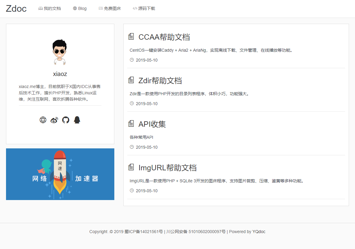 Yuque is an online document editing and collaboration tool under Alibaba, supporting Markdown editing, import/export, and API functions, making it very convenient. Xiaoz developed the YQdoc documentation system based on the Yuque API. YQdoc is developed using PHP and its code is fully open source.