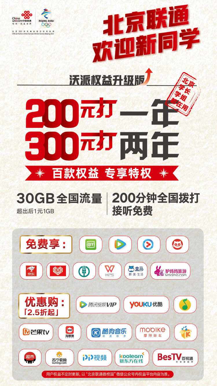 A: "Discount Enjoyment" is a collaboration between Unicom and various media platforms offering free or discounted memberships. To activate, follow "Campus Card Assistant" and send "Beijing Unicom Discount Enjoyment" to enter the privilege center and claim or purchase rights.