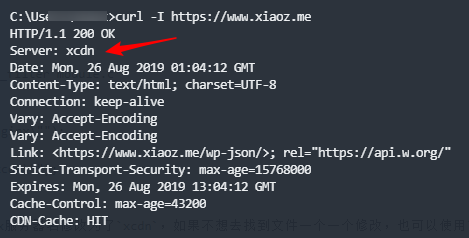 After modification, you need to recompile the source code. This article does not describe how to compile Nginx; please search online for specific instructions. We can use the curl command to test if the modification was successful. Execute the test command curl -I https://blog.xiaoz.org. The returned result is as follows; you can see that the Server field has changed to xcdn.