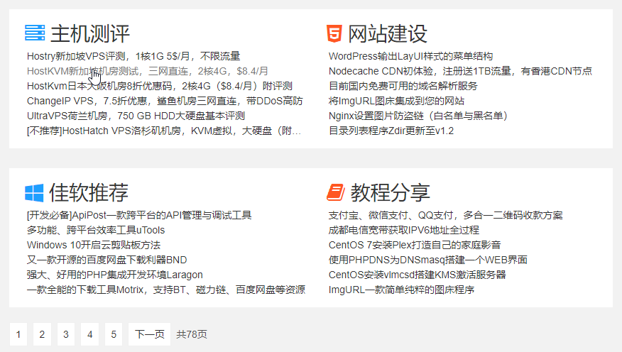 This refers to the four category articles displayed below the homepage (before pagination), as shown in the image.