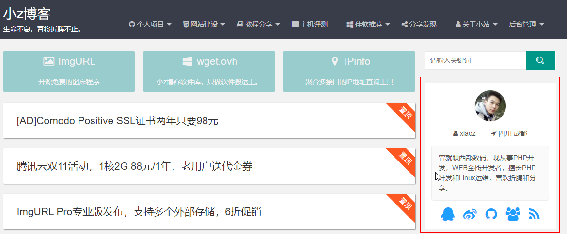 The personal information is displayed only at the top of the sidebar on the homepage, as illustrated below.