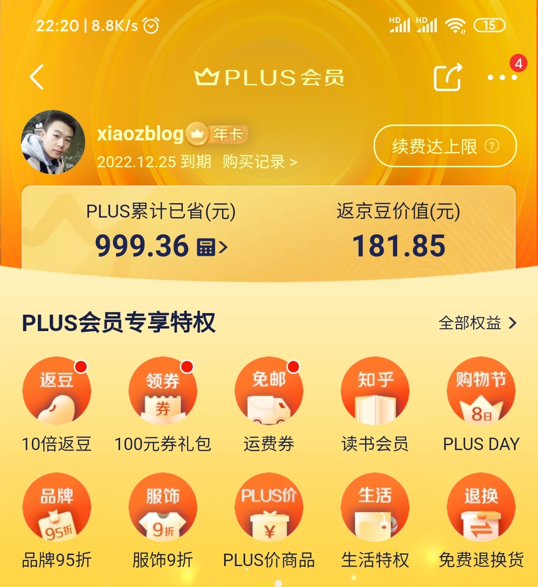 Some users who have already purchased JD PLUS may see a "Renewal Limit Reached" message, which prevents renewing PLUS through official JD channels. However, purchasing via the link above will still add one year to your membership duration. For example, xiaoz has successfully renewed until December 2021, providing several years of service.