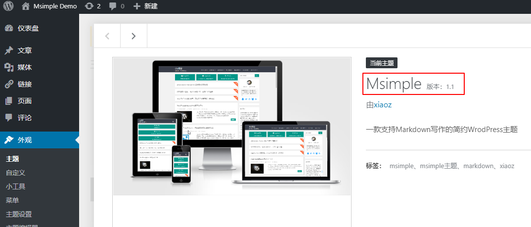 Check Msimple Version: In the WordPress admin panel, go to Appearance - Themes, find the Msimple theme, and click Theme Details to view the current version.