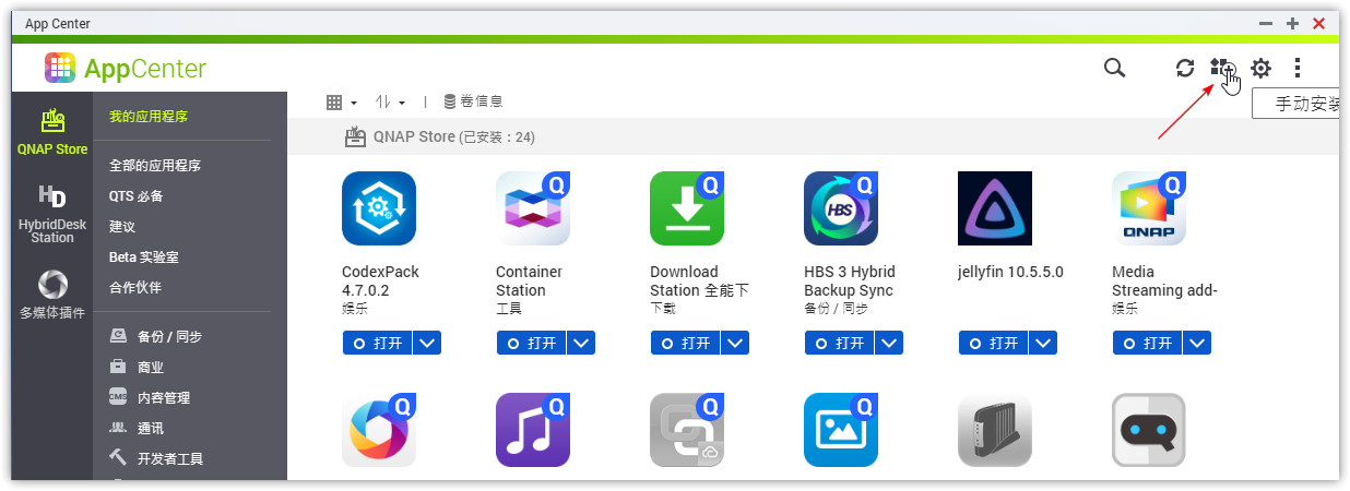 Download the package from the link above, extract it on your local machine, and locate the jellyfin_10.5.5.0_x86_64.qpkg file. Then, open the QNAP QTS desktop, go to AppCenter, and select Manual Installation to choose the jellyfin_10.5.5.0_x86_64.qpkg file as shown below.