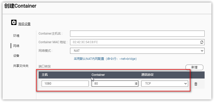 1080is the access port used later; you can set your own access port as needed. - The Container port must be