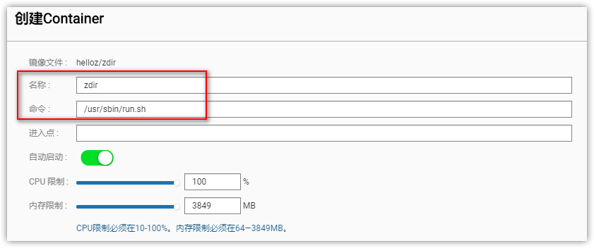 /usr/sbin/run.sh - CPU and Memory: Set according to your own situation