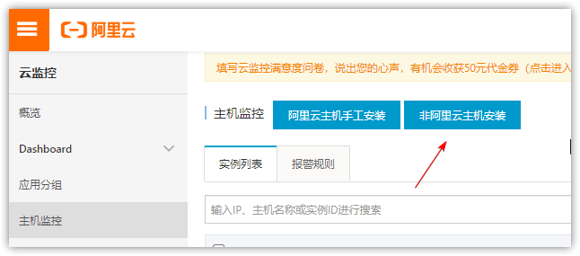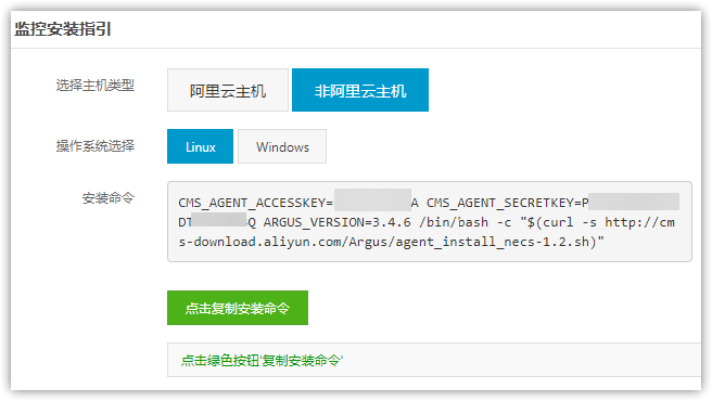Cloud Monitor collects server monitoring data via a plugin. This plugin supports installation on non-ECS servers. Since I am not using Aliyun ECS, I selected the installation option for non-Aliyun hosts.
