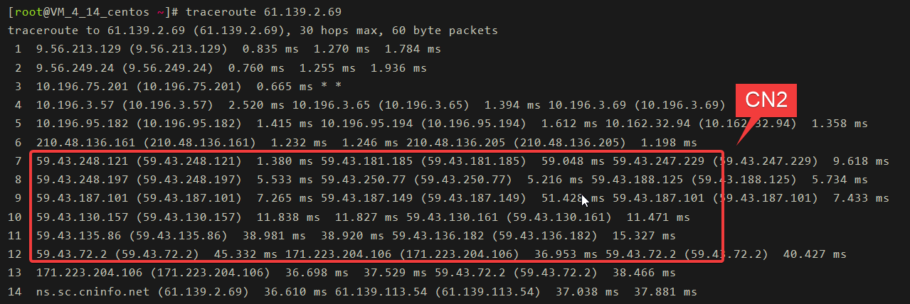The return path from Tencent Cloud Hong Kong to Sichuan Telecom also uses the CN2 network.