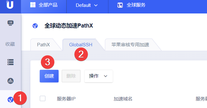 If you have already registered and logged in, visit https://console.ucloud.cn/upathx/globalssh to open the GlobalSSH console and prepare to create a GlobalSSH acceleration service.