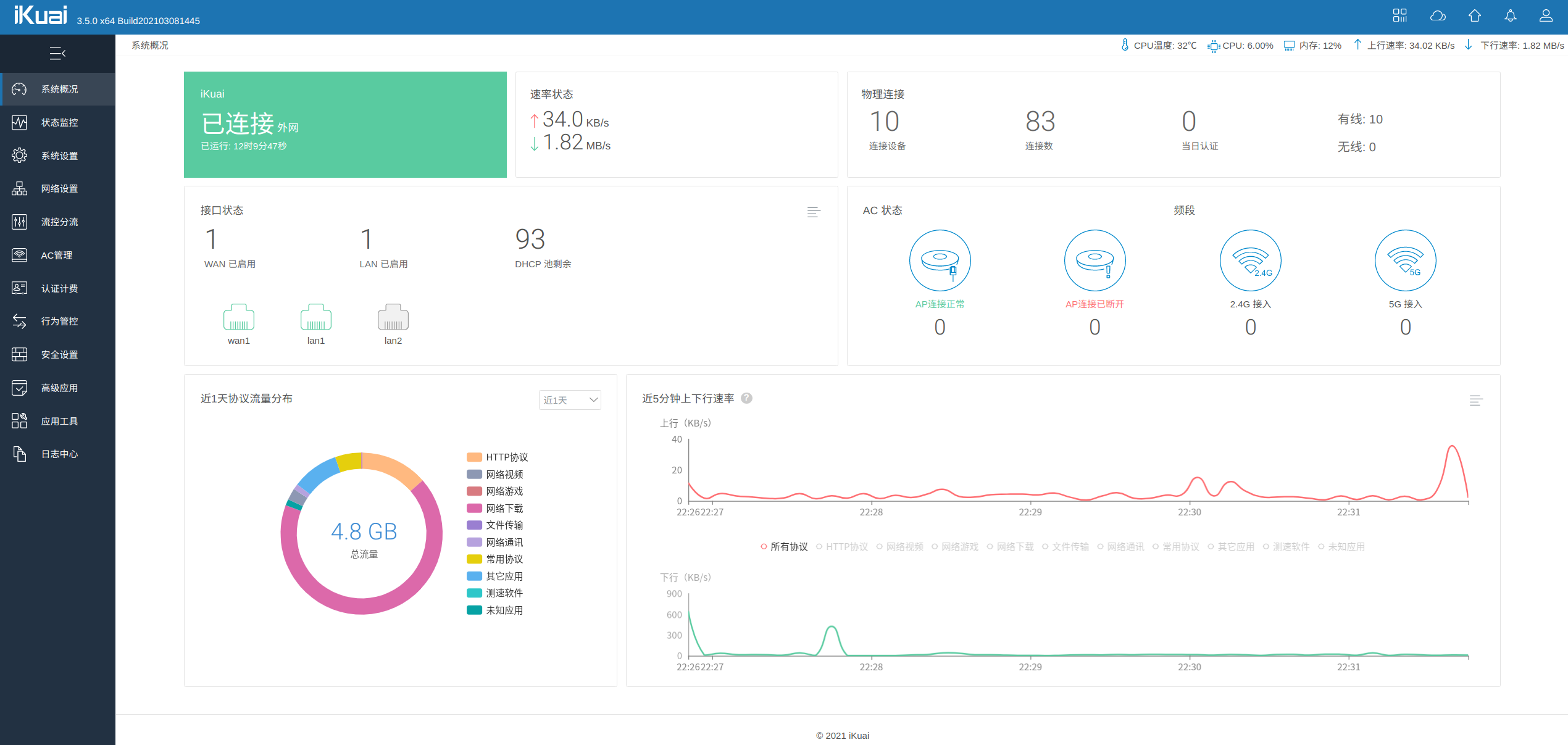Here is a screenshot of the iKuai OS backend after installation. The interface is clear and user-friendly.