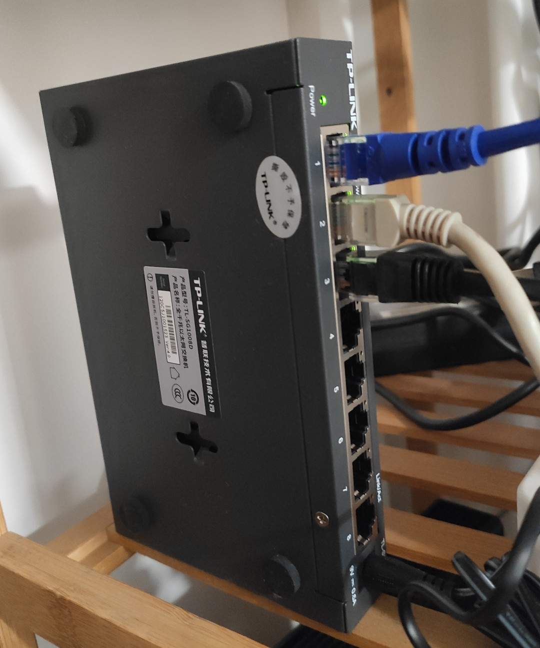 I chose the "TP-Link TL-SG1008D" switch, which has a metal casing, 8 ports, and supports Gigabit speeds. It is more than sufficient for home use, although the appearance is a bit ugly. However, this device is for utility, so aesthetics don't matter; stability is what counts.