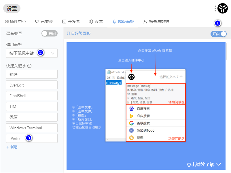 You can also add a shortcut keyword in the uTools Super Panel. Add "ipinfo" as the keyword, as shown below.
