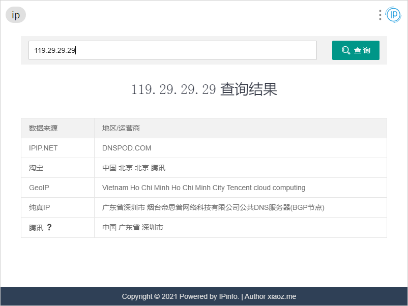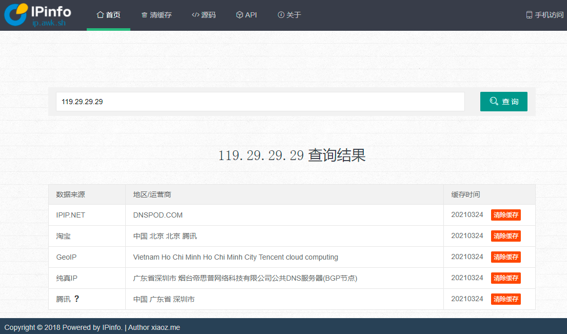 - IPinfo Source Code: https://github.com/helloxz/IPinfo
