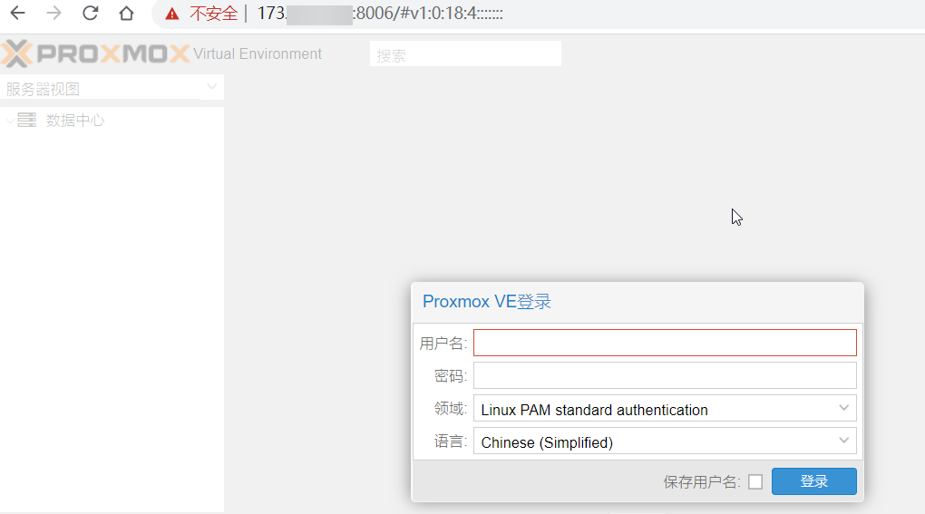 Reboot the server to load the PVE kernel. After a successful reboot, access the PVE web interface at https://IP:8006. Note that it must be the https protocol; otherwise, the page will not open. The username and password are the same as those used for the server.