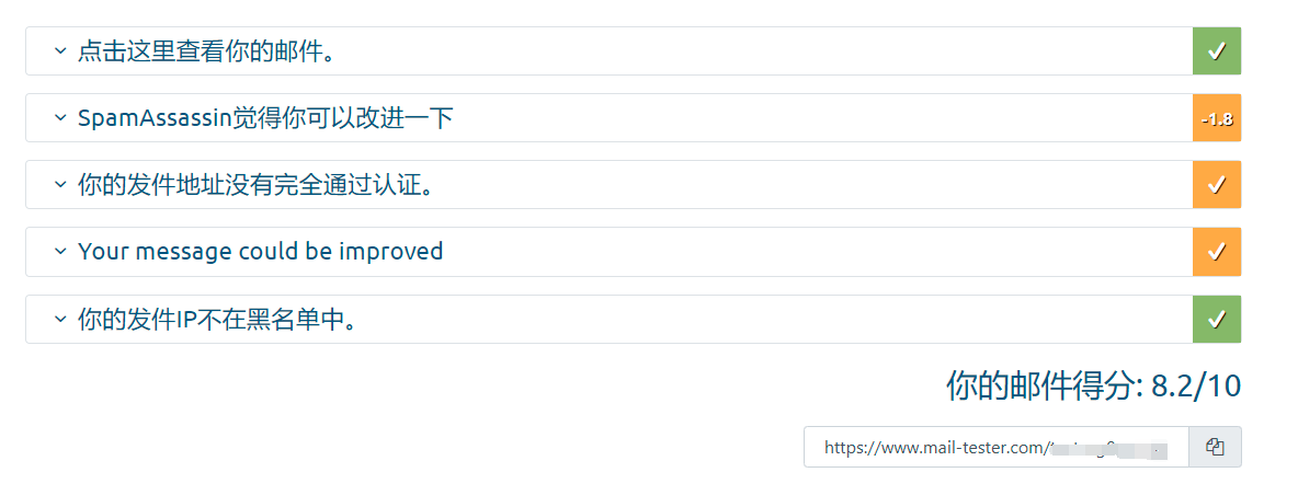 You can use the tool https://www.mail-tester.com/ to test your email score. It detects issues with your email and provides optimization suggestions. Note that the score is not absolutely accurate and results are for reference only.