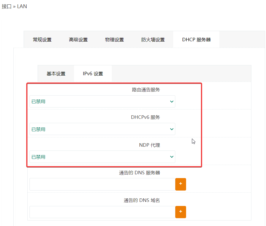 Disable IPv6 Router Advertisement, DHCPV6, and NDP Proxy. It is said that if these are not disabled, some strange problems may occur, though xiaoz has not verified this personally.