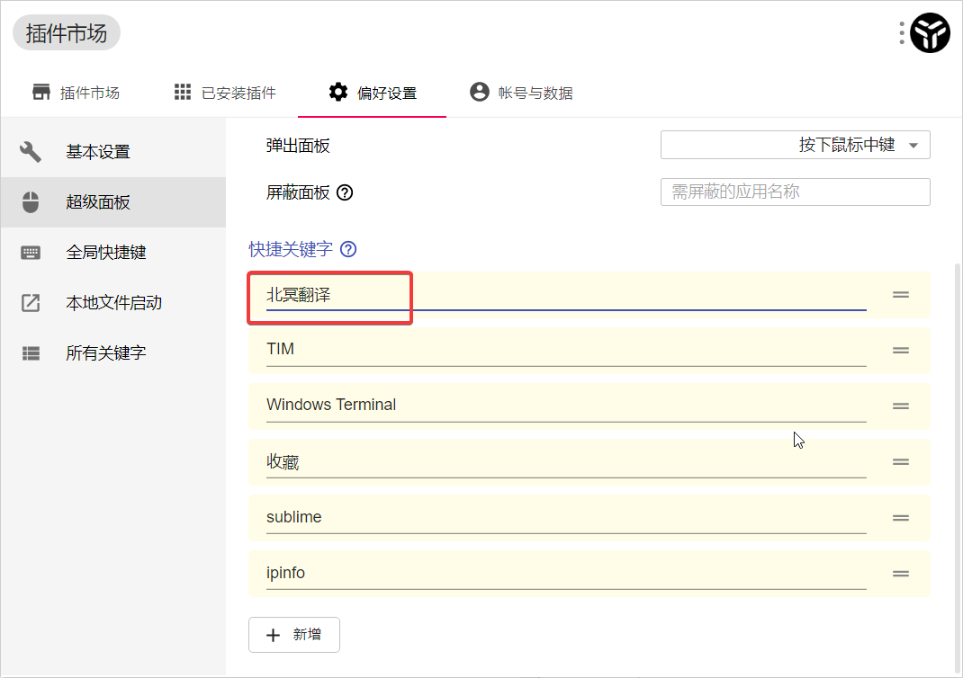 You can also add "Beiming Translation" to the shortcut keywords in uTools Preferences - Super Panel. This allows you to copy any text from the web and press the mouse middle button (the default shortcut for uTools Super Panel) to automatically translate it.