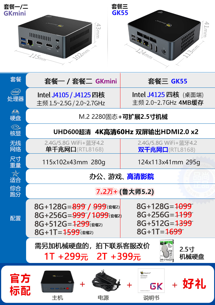 Note: The GKmini has a single network port, while the GK55 has dual ports. Do not buy the wrong one if you intend to use it as a soft router.