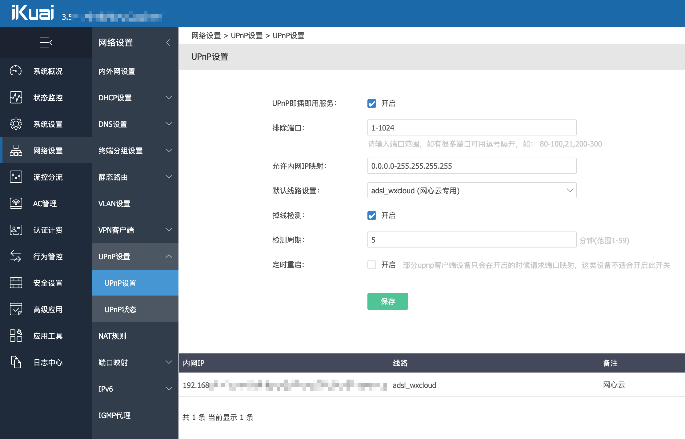 First, enable UPnP settings (required by the official): Go to the iKuai backend -> Network Settings -> UPnP Settings to enable it.