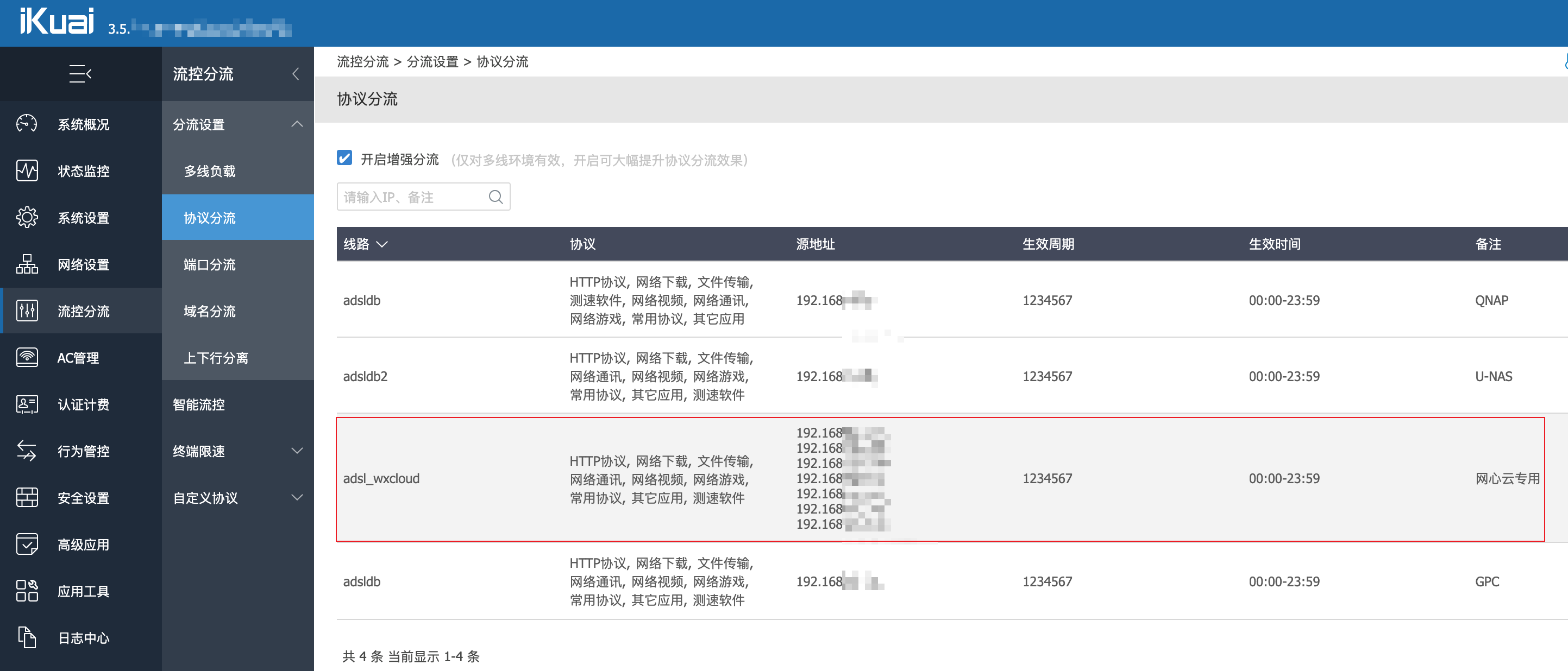 - iKuai multi-casting can split traffic for Wangxin Cloud.