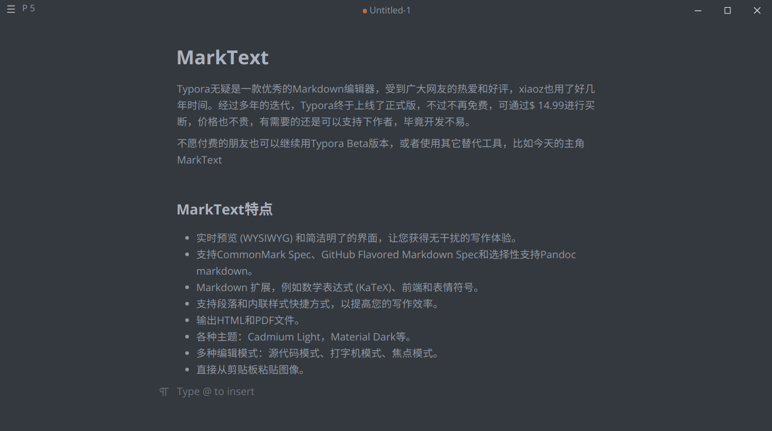 Friends who are unwilling to pay can continue using the Typora Beta version or use other alternative tools, such as the main character today, MarkText.